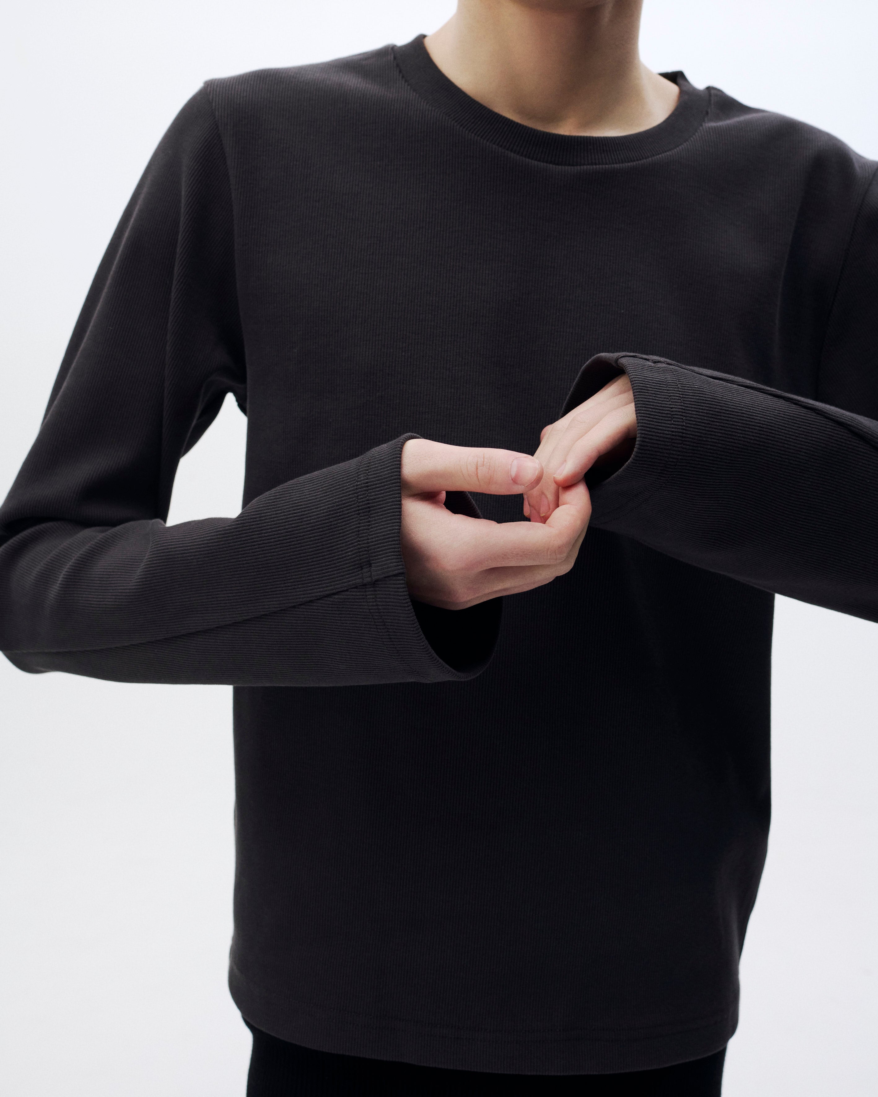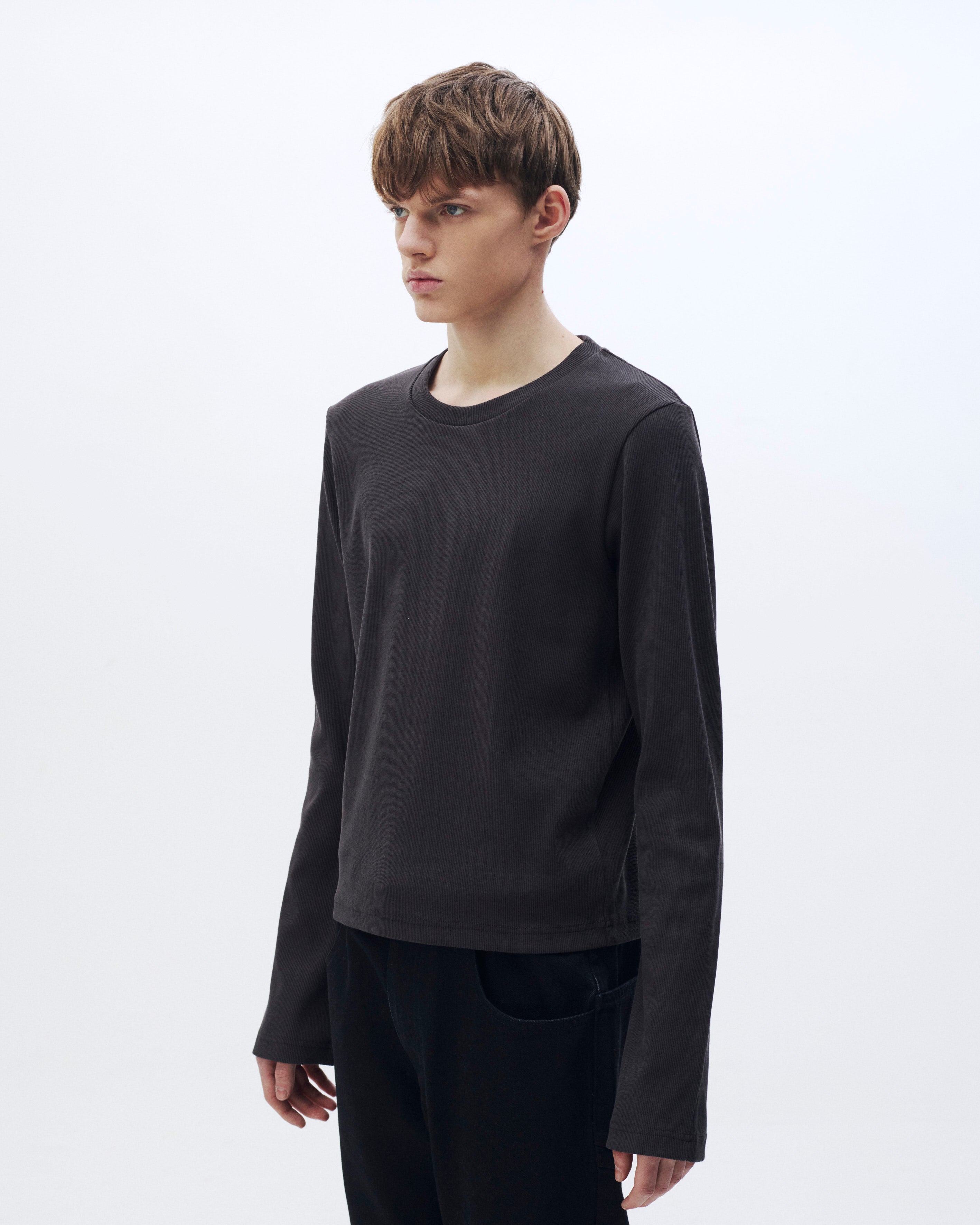 タイトなシルエットで構築されたロングスリーブTシャツ。